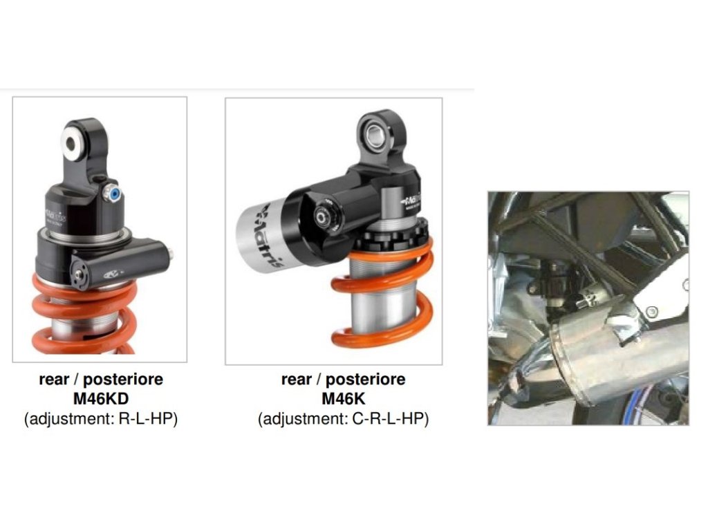 - M46K - řada zadních tlumičů pro silniční nebo závodní použití, dvě samostatné a nezávislé řídicí jednotky hydraulického tlumení pro nastavení komprese a odskoku, nastavitelná výška tlumiče
