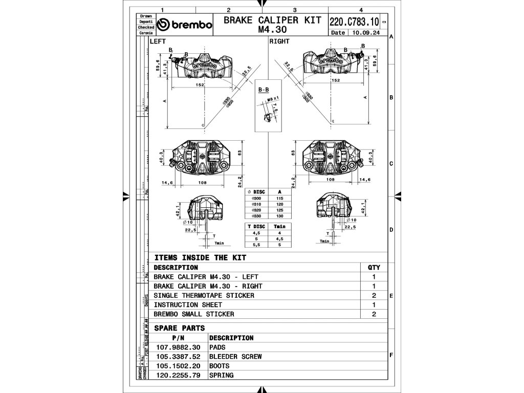 - obsah balení: pár brzdových třmenů, sadu brzdových destiček, pojistné závlačky a pružiny, tepelné samolepky