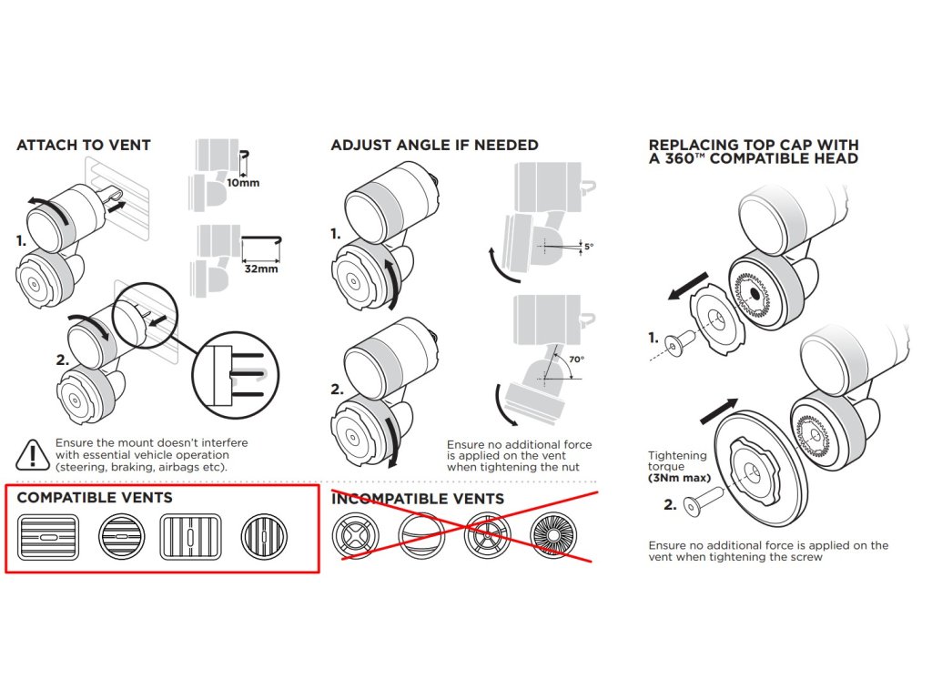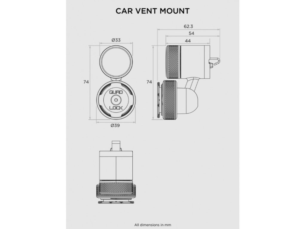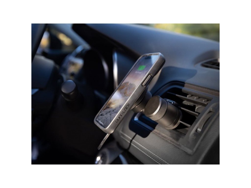 Držák Quad Lock® VENT CAR MOUNT, který je vhodný pro použití se všemi pouzdry Quad Lock® a univerzálními adaptéry, nabízí upevnění mobilního telefonu na různých větracích otvorech Vašeho auta.