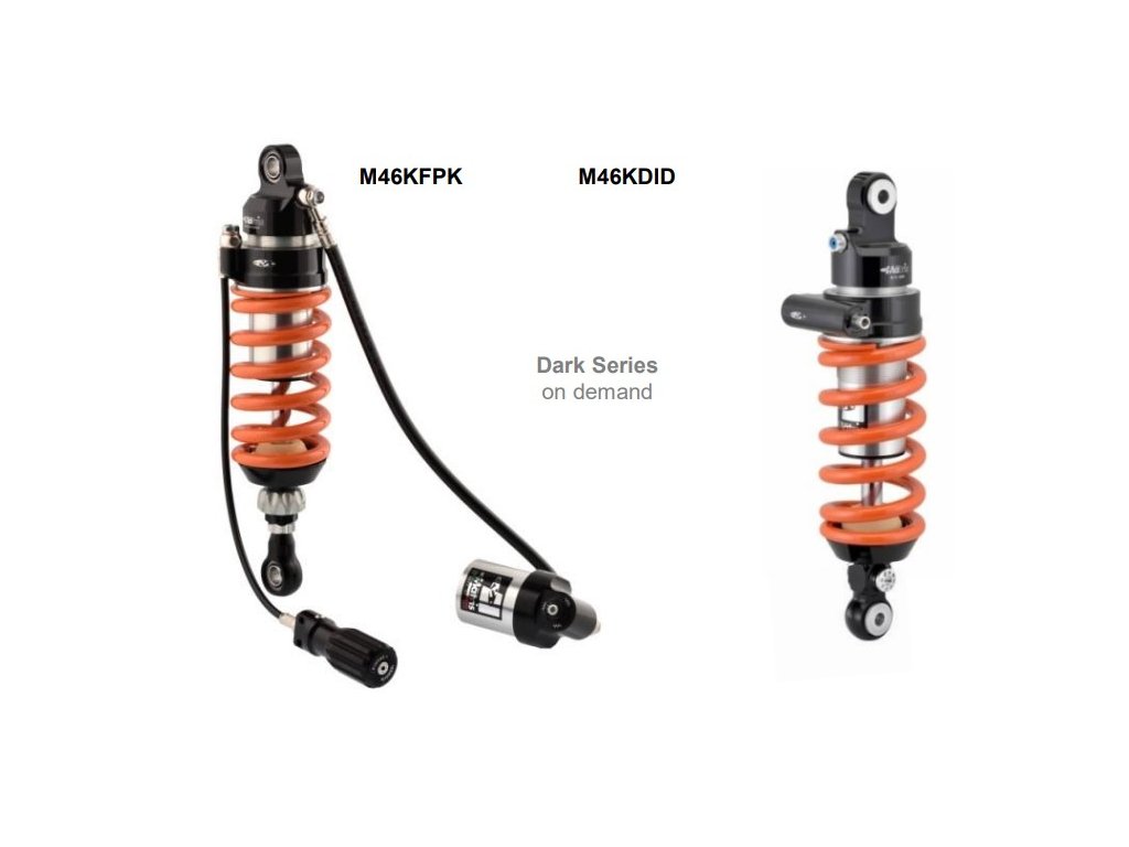 - M46KD - jednoduše nastavitelný tlumič „KD“ je určen především pro silniční motocykly, snadné nastavení pro všechny jezdce, umožňuje ovládání hydraulického tlumení, ve většině modifikací nastavení světlé výšky, standardně je zahrnuto předpětí pružiny, ale k dispozici je řada jednotek s hydraulickým předpětím pružiny, tyto tlumiče jsou vyrobeny za použití stejné kvality jako prémiové tlumiče, i když se jedná o základní produkt.