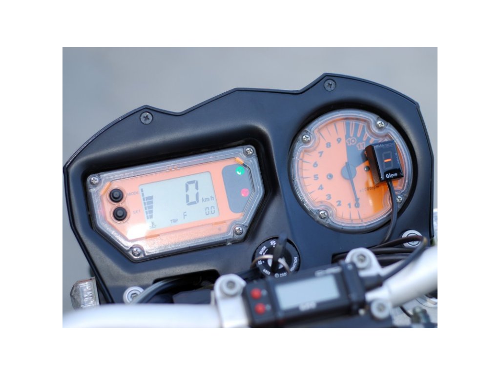 Přestože je Gipro X nejmenší a nejkompaktnější ukazatel na trhu, má extra jasný displej čitelný na slunci. Rozměry jednotky ukazatele při čelním pohledu na displej: šířka: 20mm, výška: 30mm, hloubka/tloušťka: 14mm. Prostě perfektní velikost. Gipro řady X-Type má jednoduchý a čistý design, který ladí s originálními prvky motocyklů.