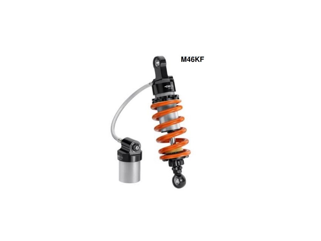 - M46KF - řada zadních tlumičů s flexibilní ovládáním je ideální pro silniční a silničně/cestovní a enduro motocykly, dvě samostatné a nezávislé řídicí jednotky hydraulického tlumení pro nastavení komprese a odskoku, nastavitelná výška tlumiče