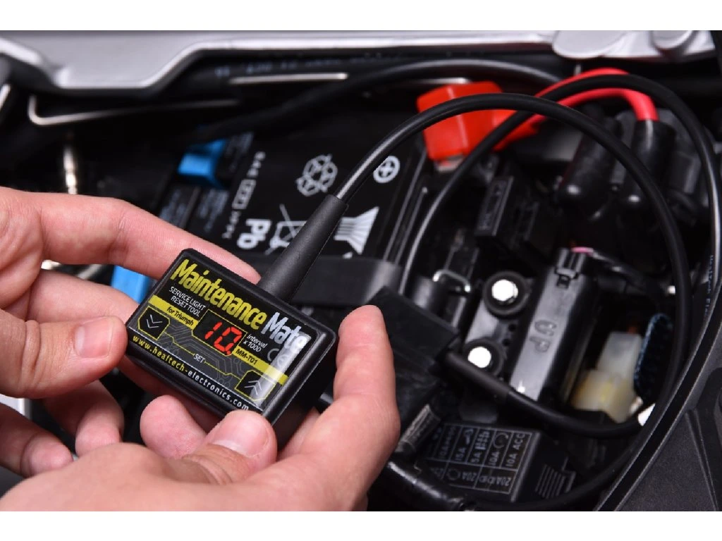 Maintenance Mate Tool pro motocykly Triumph. Nové modely motocyklů Triumph mají indikaci "servisního intervalu" na palubní desce, která vyžaduje OBD nástroj na vymazání po servisu.