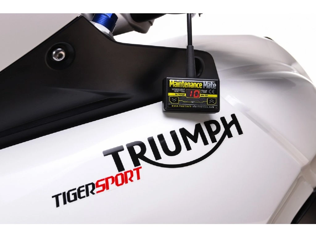 Maintenance Mate Tool pro motocykly Triumph. Nové modely motocyklů Triumph mají indikaci "servisního intervalu" na palubní desce, která vyžaduje OBD nástroj na vymazání po servisu.