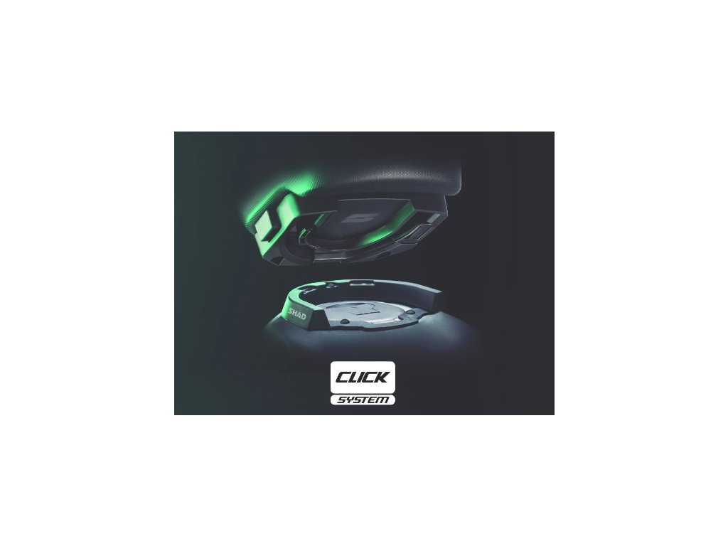 Systém uchycení Click System (patentováno) umožňuje snadnou a rychlou instalaci vaku. Vyjmutí je opravdu pohodlné díky vestavěnému tlačítku. Systém dosahuje dokonalé estetické integrace na nádrži motocyklu.