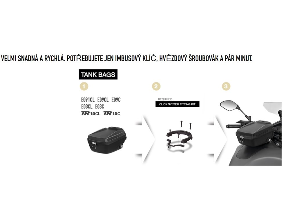 Montážní sada CLICK SYSTEM pro uchycení tašek na nádrž E091CL, E09CL, E09C, E03CL, E03C, TR15C, TR15CL.