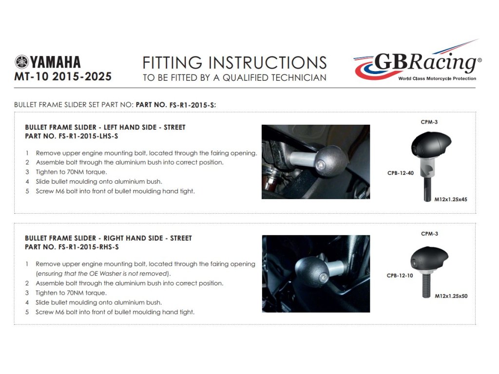 Yamaha YZF-R 1, MT-10 Bullet slider na rám motocyklu GB Racing FS-R1-2015-S