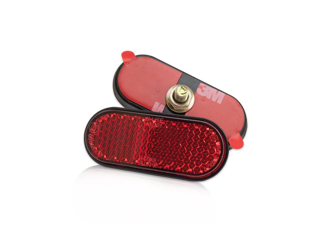 Červená homologovaná odrazka 55x23x8mm, samolepicí nebo uchycení šroubem M5.