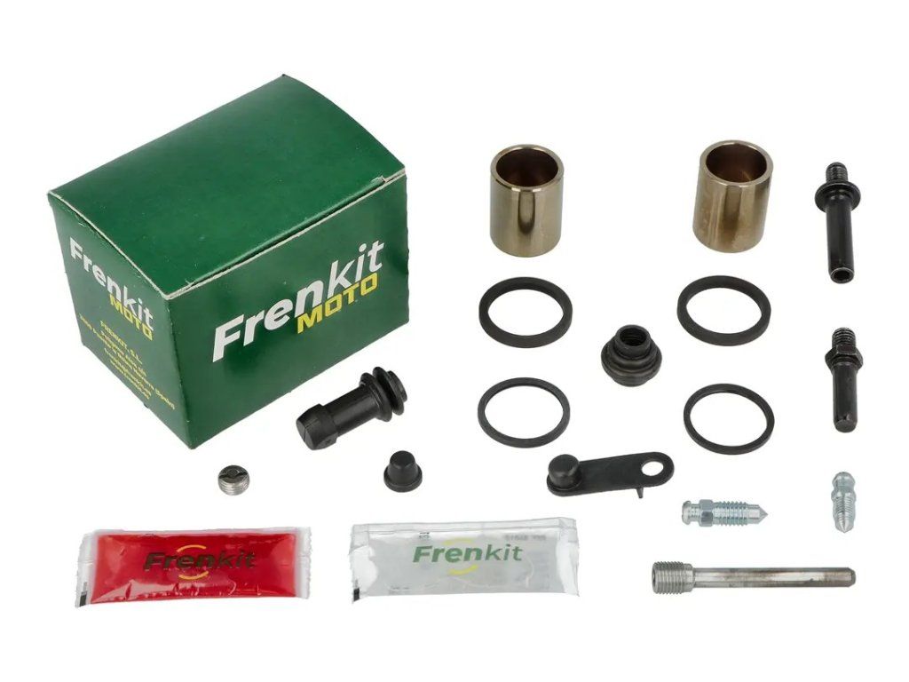 Opravná sada předního brzdového třmenu (brzdiče). Obsahuje pístky třmenů, gumová těsnění/krytky, odvzdušňovací šrouby a čepy brzdových destiček na opravu jednoho brzdového třmenu. Náhradní díly jsou v té nejvyšší kvalitě od výrobce Frenkit, S.L. - Španělsko.