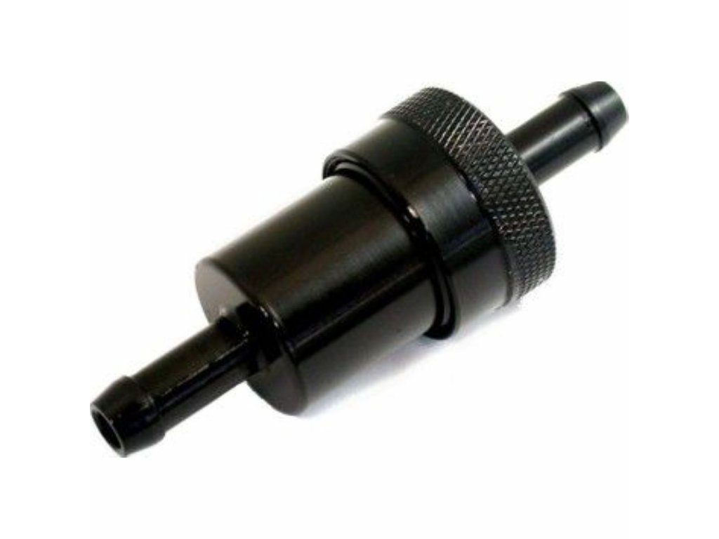 Hliníkový palivový filtr, průměr 6 nebo 8mm, v černém nebo chromovém provedení, s možností výměny vnitřního filtrovacího sítka. Filtrovací vložka (filtr) je součástí každého filtru.