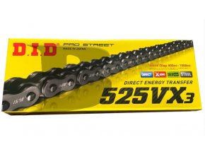 100 článků dlouhý řetěz DID 525ZVMX2 včetně nýtovací spojky, x-kroužkový zesílený, černý, pro motocykly do objemu 1300ccm, pevnost v tahu 46,3kN