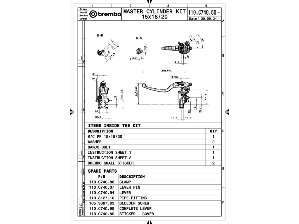 - 19RCS neinstalujte bez dozoru mechanika, při použití na standardním motocyklu bude páka velmi tvrdá a obtížně pohyblivá, tento hlavní válec se smí používat pouze s kluznými spojkami nebo pro aplikace vyžadující tak velký průměr pístu.