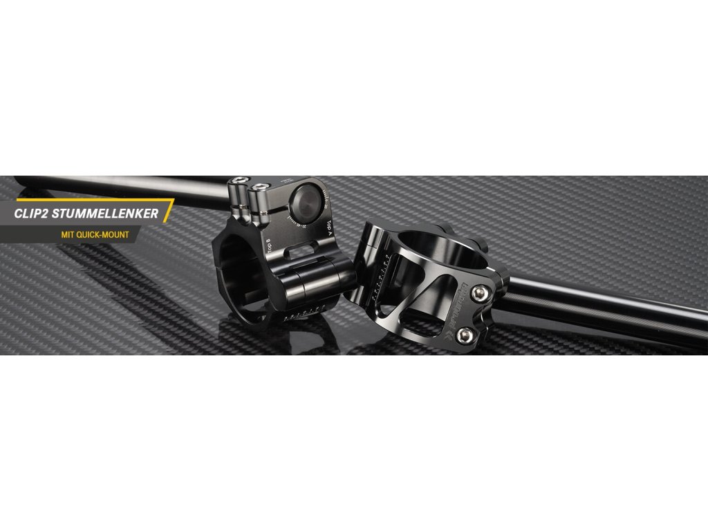 PROBRAKE CLIP2 clip-on sportovní řidítka s možností nastavení sklonu řídítka a 2 možnosti montáže - výsledkem je odsazení: 18 mm stranově / 8 mm svisle. Řidítka jsou vyrobena z hliníku obráběným CNC a splňují nejvyšší bezpečnostní standardy. Vysoce kvalitní povrchová úprava je dosažena černým eloxováním.