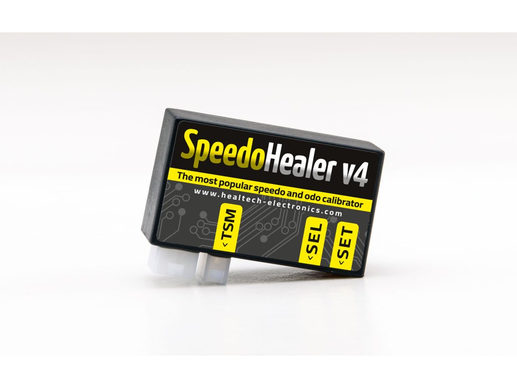 Kalibrátor rychloměru SpeedoHealer v4. Zlegalizujte si změnu sekundárního převodu pomocí překalibrování rychloměru. Převeďte MPH na Km/h na importovaných motocyklech nebo při cestě do zahraničí.