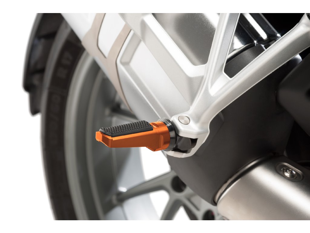Jejich ergonomický design zvyšuje jejich volnou výšku od země, což umožňuje větší úhel sklonu motocyklu. Jsou nastavitelné v sklonu a obsahují značky pro zajištění přesné montáže.