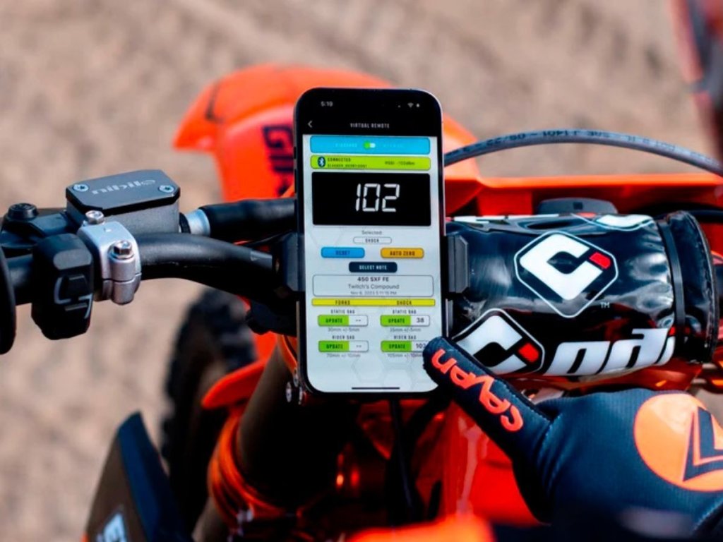 Motool Slacker V5, digitální měřicí přístroj pro nastavení tlumičů SAG na váhu jezdce.