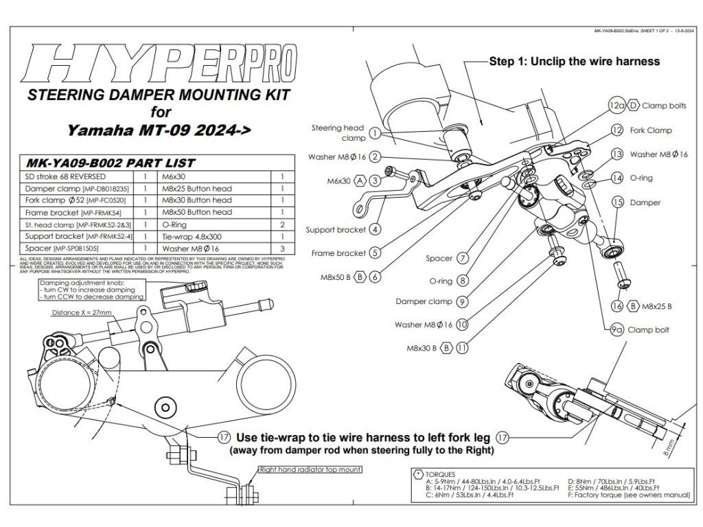 YAMAHA MT-09 tlumič řízení Hyperpro