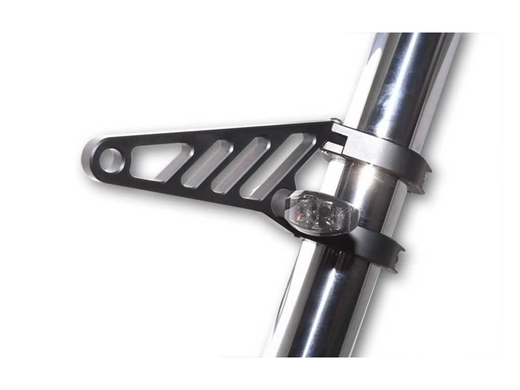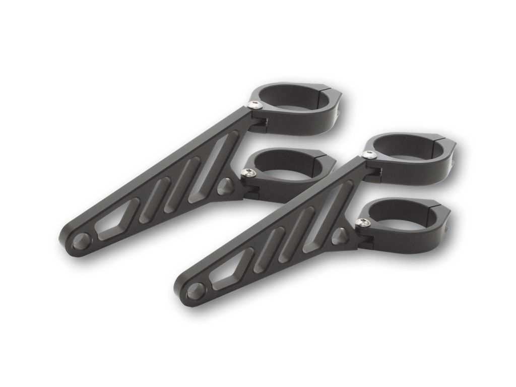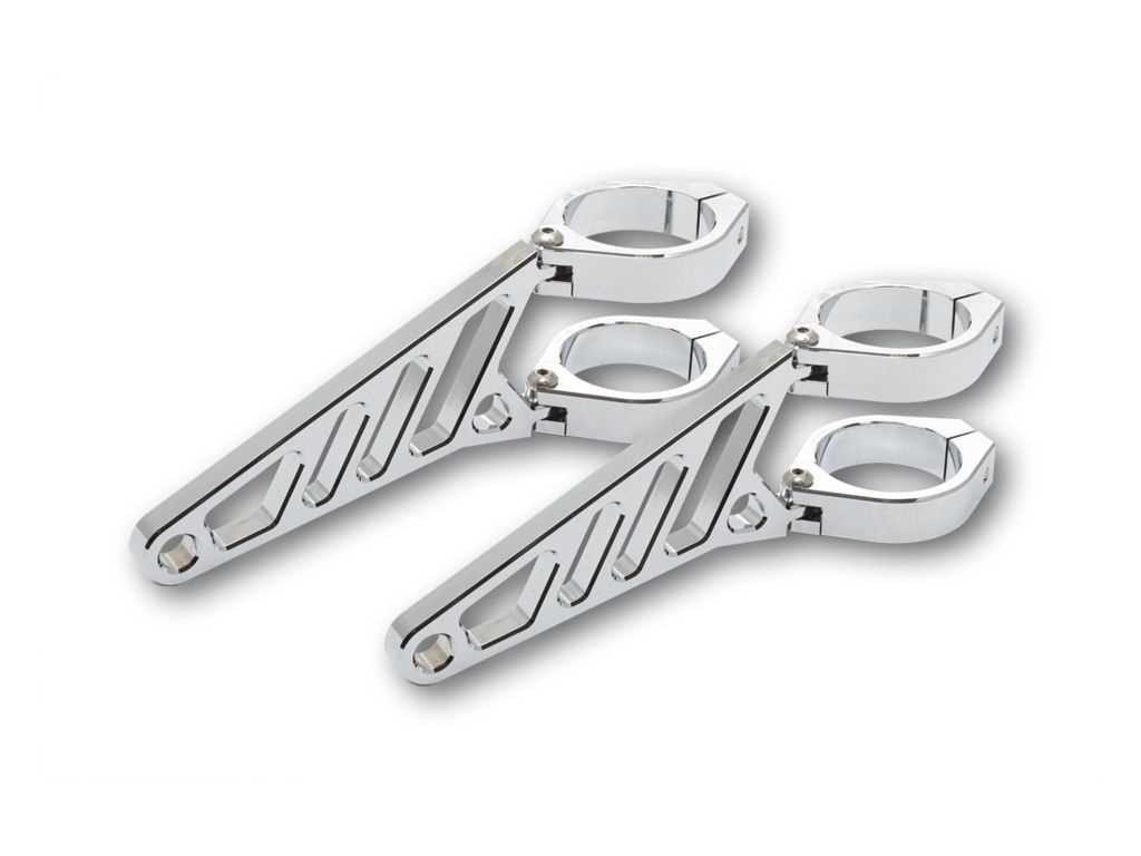 HIGHSIDER CNC dlouhé držáky předního světla na trubky vidlic, v černém nebo chromovém provedení, několik velikostí provedení. Držáky lze upravit na šířku světlometu a mají čtyři velikosti uchycení (vyberte). Sada obsahuje 4x držák na vidlice, 2x držák světla.
