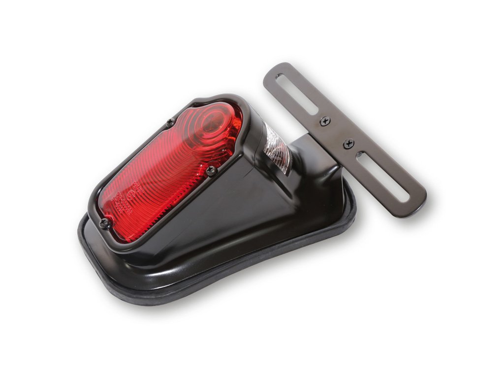 Zadní a brzdové světlo Tombstone s červeným sklem, v černém pouzdře s držákem RZ.