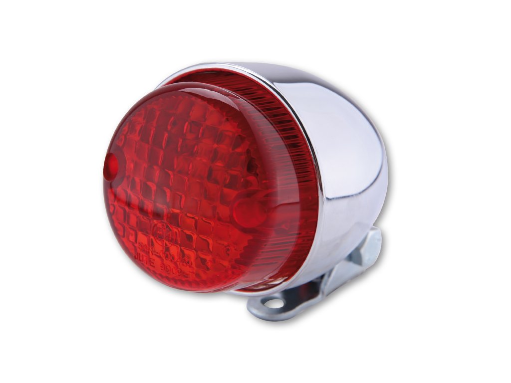 Universální zadní a brzdové světlo Texas s červeným sklem, osvětlením registrační značky a nastavitelným držákem, v černém nebo chromovém provedení.