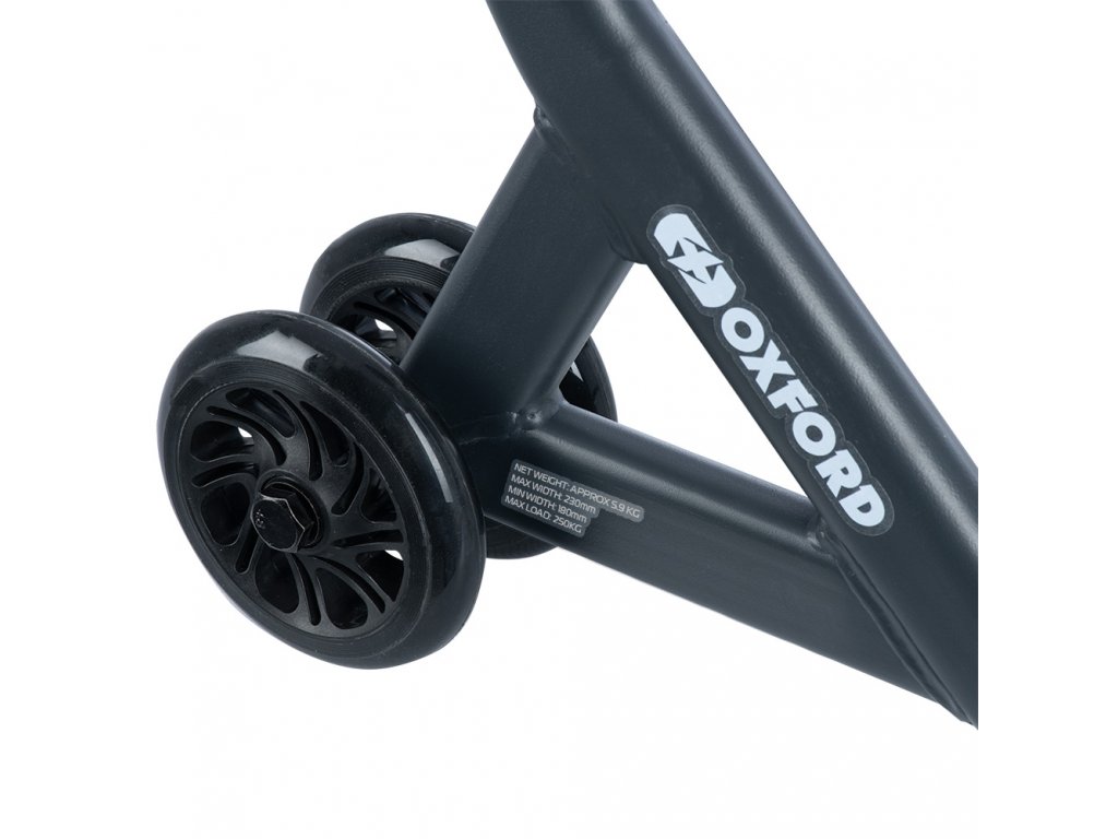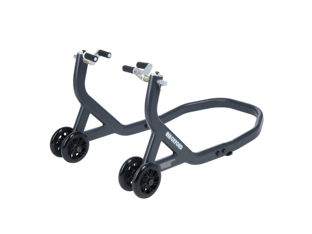 Řada stojanů OXFORD ZERO-G obsahuje širší sortiment stojanů pro motocykly. Jednotlivé části stojanu vyrobené z trvanlivých ocel profilů spojených pevnostními spojovacími prostředky a osazené kolečky o větším průměru pro zvýšení stability.