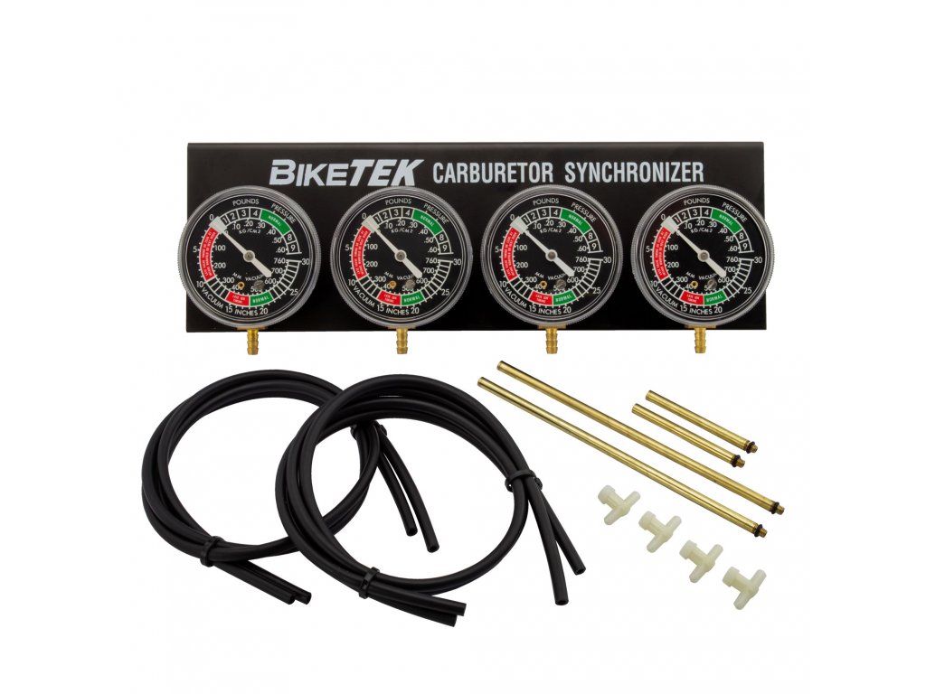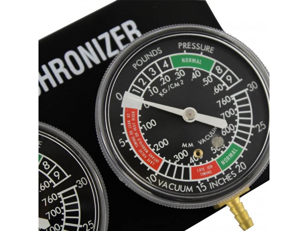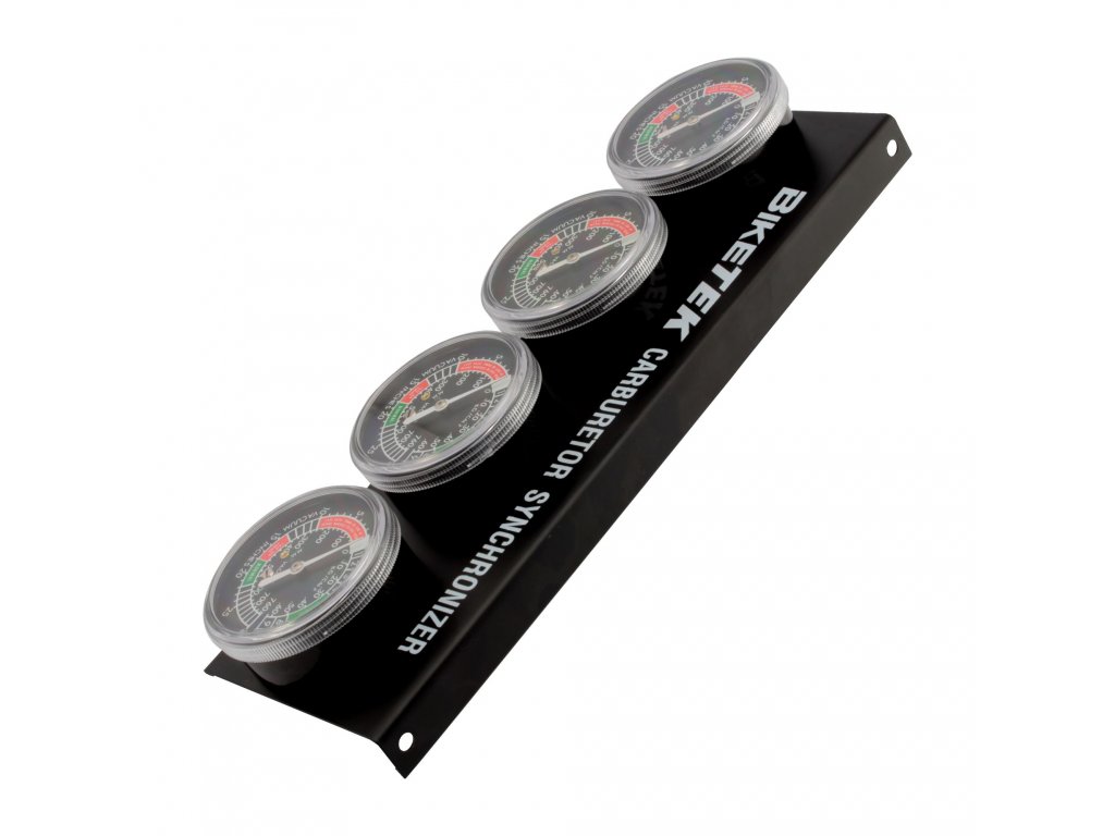 Podtlakové manometry pro synchronizaci karburátorů jsou určeny pro přesné nastavení karburátorů pomocí poměřování hodnoty podtlaku v jednotlivých karburátorech. Tento synchronizér je určen pro 2 - 4 karburátory. Sada obsahuje M5 závitové prodloužení (2x 65mm a 2x180mm), konektory a vakuové hadice. Držák s možností zavěšení.