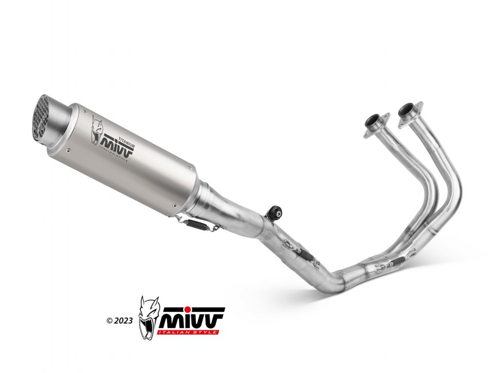 MiVV kompletní výfukový systém. Za použití tohoto volitelného katalyzátoru splňuje výfuk homologaci Euro5.
