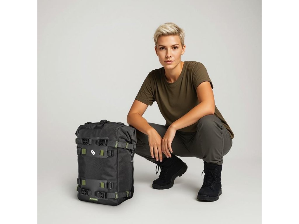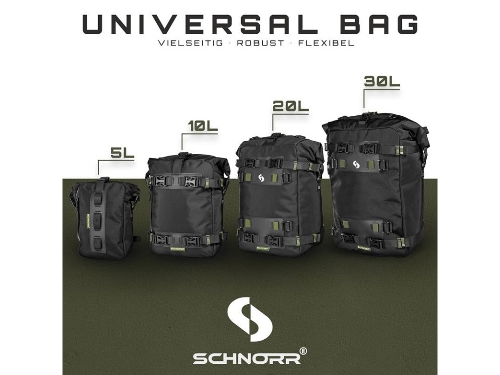 SCHNORR Drybag 20L (Velikost L) – Vodotěsný vak s vnitřní vložkou. Kompaktní vodotěsné zavazadlo navržené pro náročné podmínky. Tento model o objemu 20 litrů je díky svým rozměrům a systému uchycení vhodný pro montáž na zadní nosiče, sedadla spolujezdce, nebo jako přídavné zavazadlo na víka pevných kufrů a zadní rámy.