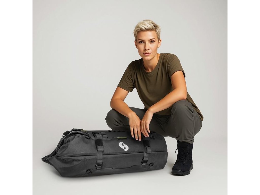 - Systém uzávěru: Oboustranný rolovací uzávěr (Roll-Top) zajišťující variabilitu objemu a přístup k obsahu z obou stran.