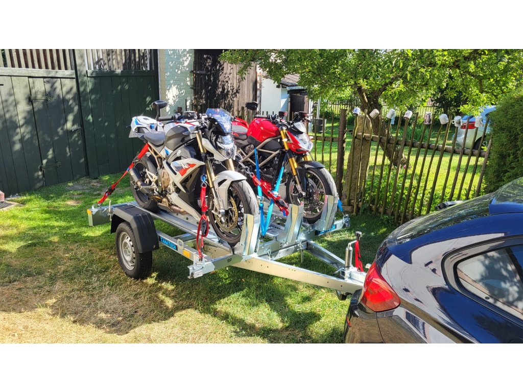- Provozní hmotnost 550 kg (maximální váha obou přepravovaných motocyklů)