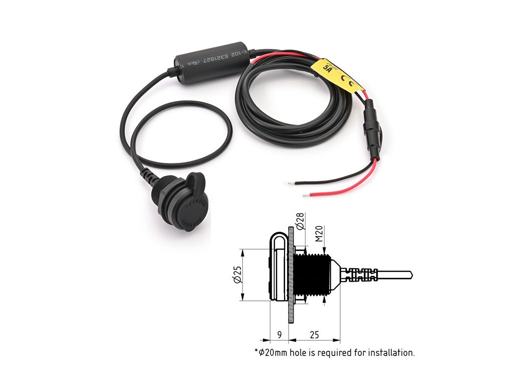 Zásuvka je vhodná pro napájení mobilních telefonů vč. Iphone, kamer a příslušenství. Chcete-li zabránit vybití baterie, vypněte napájení, když je vozidlo zastaveno, zapojení (+) doporučujeme s hlavním klíčem, na spínaní světel nebo samostatným spínačem.
